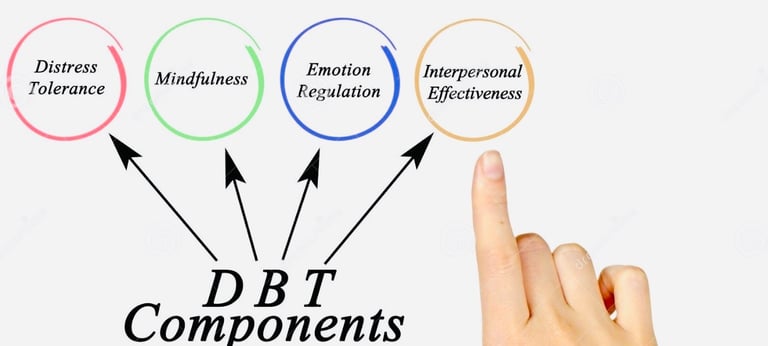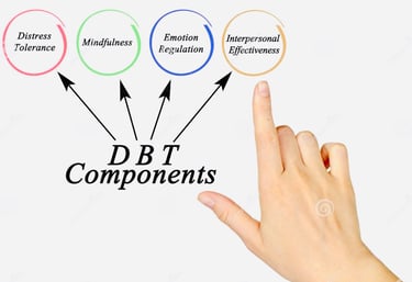 DBT teaches skills to help you manage intense emotions, stay grounded, improve relationships, and cope with stress in healthier ways. It blends mindfulness with practical tools for emotional regulation, distress tolerance, and communication—supporting you in creating more balance, stability, and control in your life.